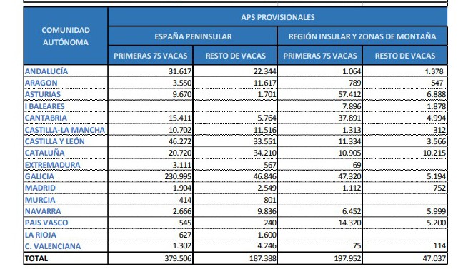 No hay que olvidar que estos importes se pagan en su totalidad sólo para las 75 primeras vacas de cada explotación y para el resto de animales se abonaría el 50 %.