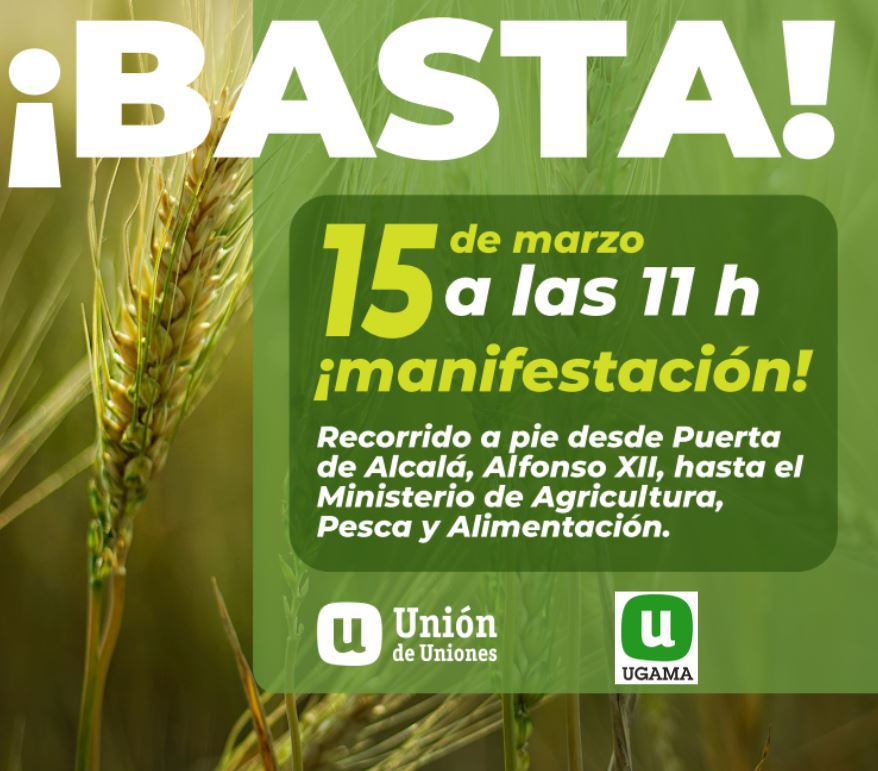 UGAMA, saldrá el próximo 15 de marzo en Madrid, desde la Puerta de Alcalá hasta el Ministerio de Agricultura discurriendo por la calle Alfonso XII.